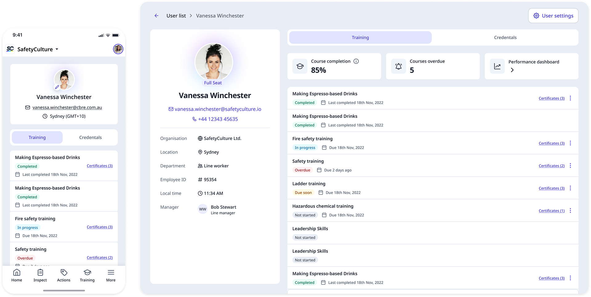 • A unified user profile with training results and credentials